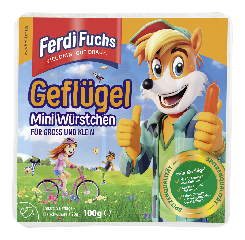 Für den nächsten Snackhunger: die leckeren Ferdi Fuchs Mini Würstchen in der Geflügel-Variante! Erhältlich im praktischen Vorratspack 5 x 20 g sind die Ferdi Fuchs Mini Geflügel Würstchen der ideale Snack für den Ausflug, die Pausenbox oder das nächste Picknick. Guten Appetit!